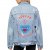 Heart Design Ladies Denim Jacket is light enough to wear on a cool day but roomy enough to layer it with a sweatshirt. The ripped distressed frayed denim jacket is a basic to add to your fall wardrobe.