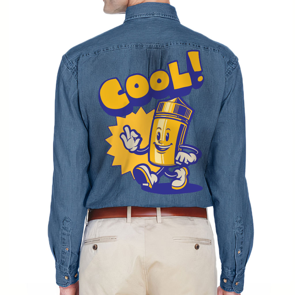 Cool Design Men’s Denim Shirt – Printed Denim Shirt – Cute Long Sleeve Shirt
