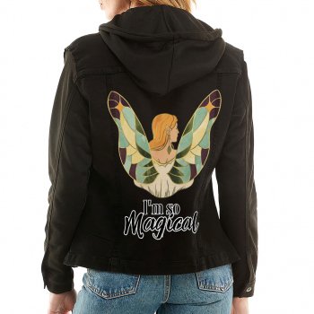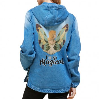 Magical Women’s Denim Jacket with Hoodie – Fairy Ladies Denim Jacket – Cute Denim Jacket