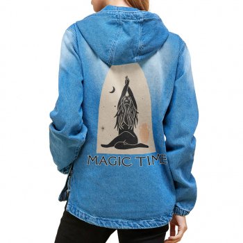 Abstract Woman Women’s Denim Jacket with Hoodie – Magic Ladies Denim Jacket – Yoga Denim Jacket