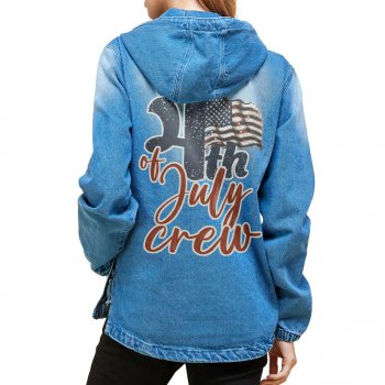 4 Of July Women’s Denim Jacket with Hoodie – Independence Day Ladies Denim Jacket – Printed Denim Jacket