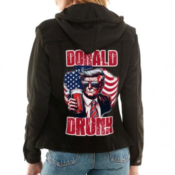 Funny President Ladies Denim Jacket with Fleece Hoodie – Patriotic Print Women’s Denim Jacket – Trendy Denim Jacket