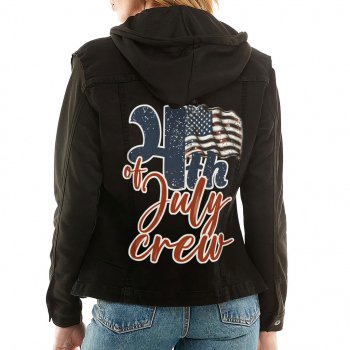 4 Of July Ladies Denim Jacket with Fleece Hoodie – Independence Day Women’s Denim Jacket – Printed Denim Jacket