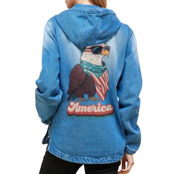 America Women’s Denim Jacket with Hoodie – Eagle Ladies Denim Jacket – Funny Denim Jacket