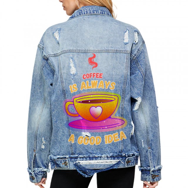 Funny Coffee Cropped Ladies Denim Jacket – Quote Women’s Denim Jacket – Themed Denim Jacket