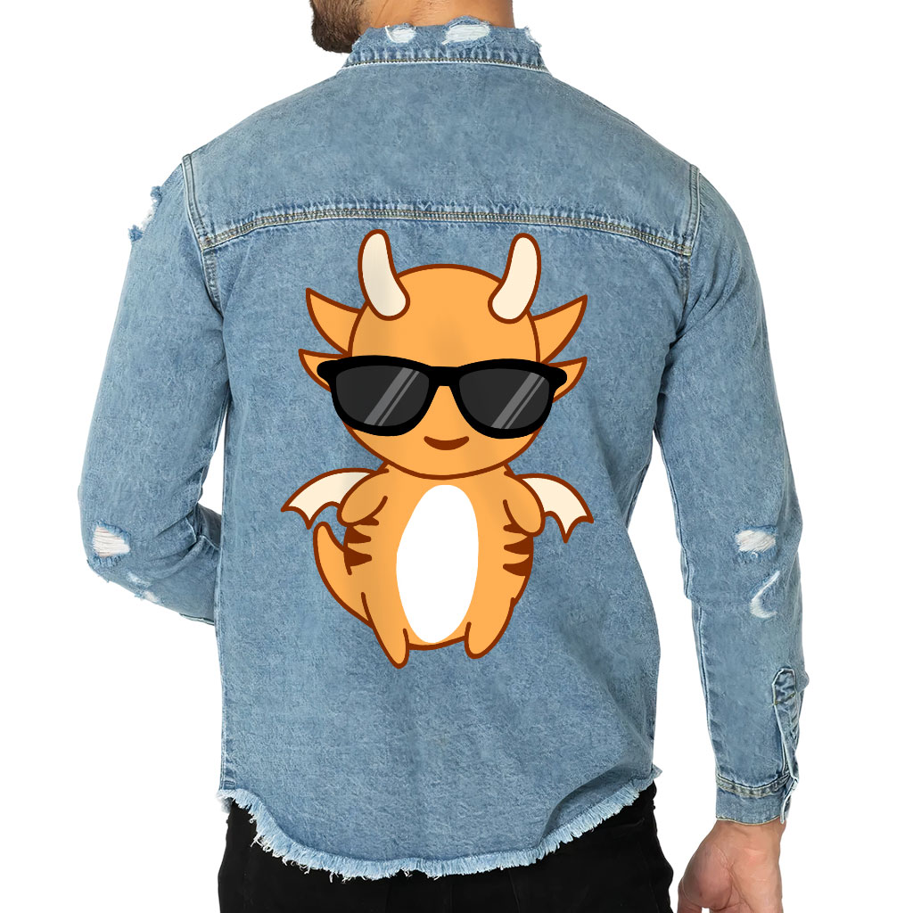 Funny Dragon Men’s Denim Shirt with Distressed – Cartoon Denim Shirt – Cool Shirt for Men
