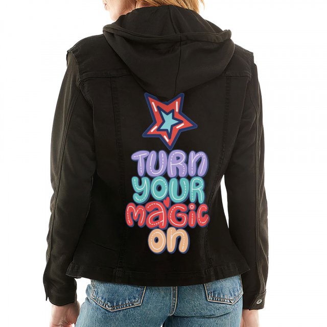 Moon Phases Women’s Denim Jacket turns even the plainest clothing into a look that’s cute and bangs on trend. To complete the picture, the jacket comes with metal detailing.