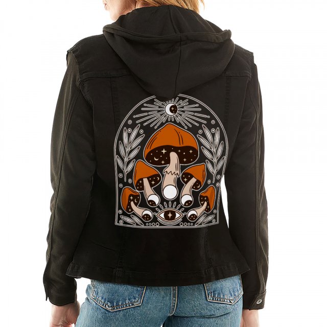 Magic Mushrooms Women’s Oversized Denim Jacket – Moon Phases Ladies Denim Jacket – Printed Denim Jacket