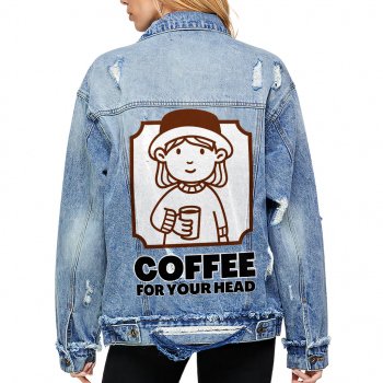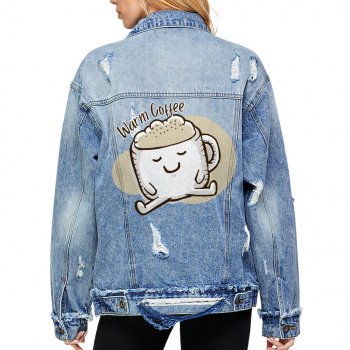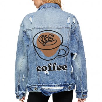 Coffee Design Women’s Oversized Denim Jacket – Cool Ladies Denim Jacket – Printed Denim Jacket