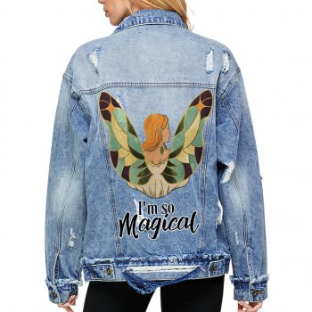 Magical Women’s Oversized Denim Jacket – Fairy Ladies Denim Jacket – Cute Denim Jacket