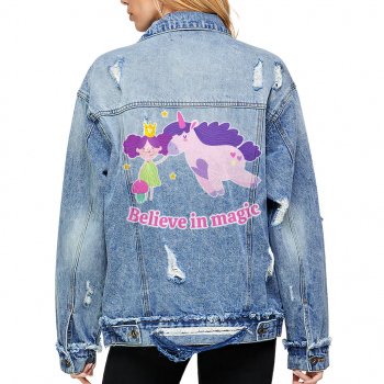 Magic Design Women’s Oversized Denim Jacket – Cute Cartoon Ladies Denim Jacket – Princess Denim Jacket