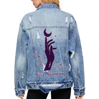 Keep Inspiring Women’s Oversized Denim Jacket – Hand Ladies Denim Jacket – Themed Denim Jacket