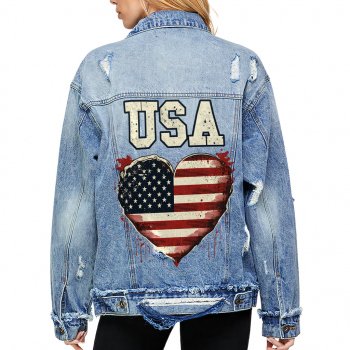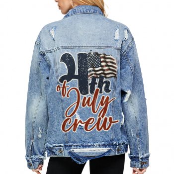 4 Of July Women’s Oversized Denim Jacket – Independence Day Ladies Denim Jacket – Printed Denim Jacket