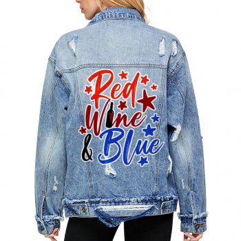 Red Wine and Blue Women’s Oversized Denim Jacket – Cool Ladies Denim Jacket – Graphic Denim Jacket