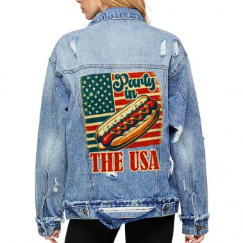 Party in the USA Ladies Casual Denim Jacket – Hot Dog Women’s Denim Jacket – Themed Denim Jacket