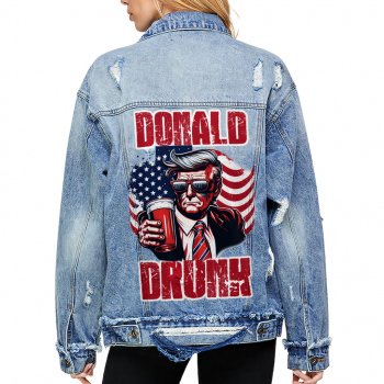 Funny President Women’s Oversized Denim Jacket – Patriotic Print Ladies Denim Jacket – Trendy Denim Jacket