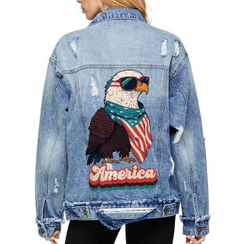 America Women’s Oversized Denim Jacket – Eagle Ladies Denim Jacket – Funny Denim Jacket