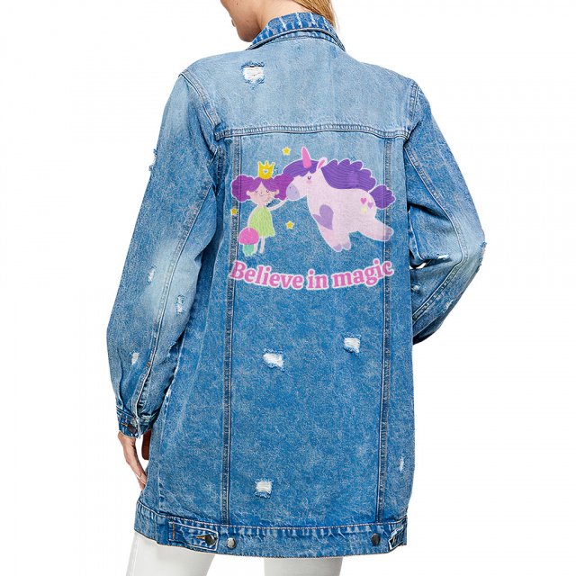 Graphic Denim Jacket not only shows your elegant charm but also is a perfect match with your favorite shorts, leggings, slacks, denim jeans, etc. for a trendy look. Finished with a button closure, this women’s jacket will give you the look you love without compromising comfort.