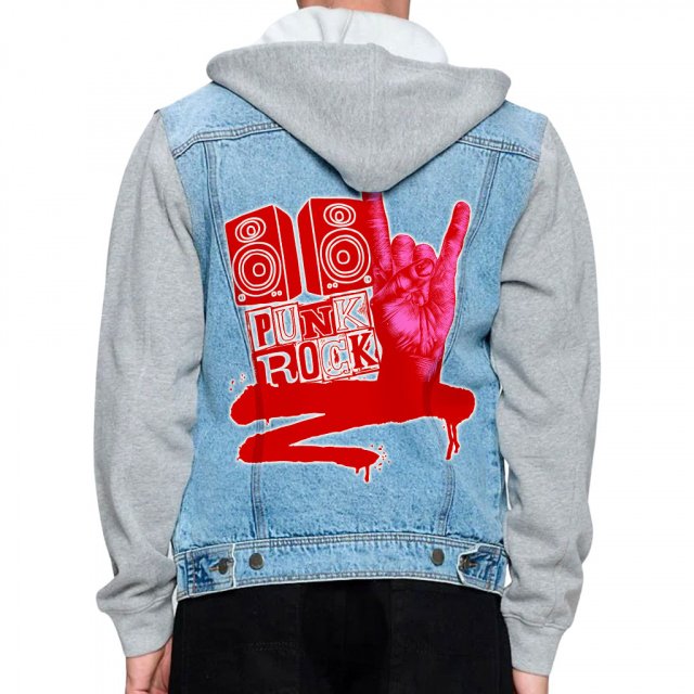 Rock ‘n’ Roll Themed Men’s Sherpa-Lined Denim Jacket