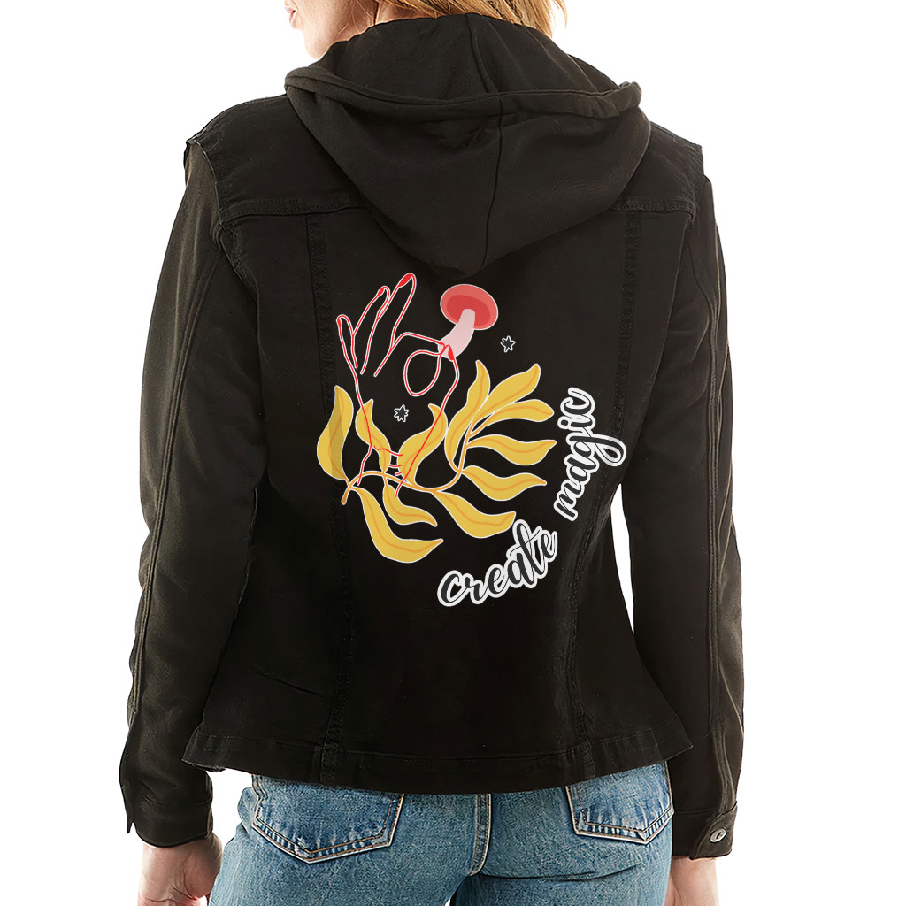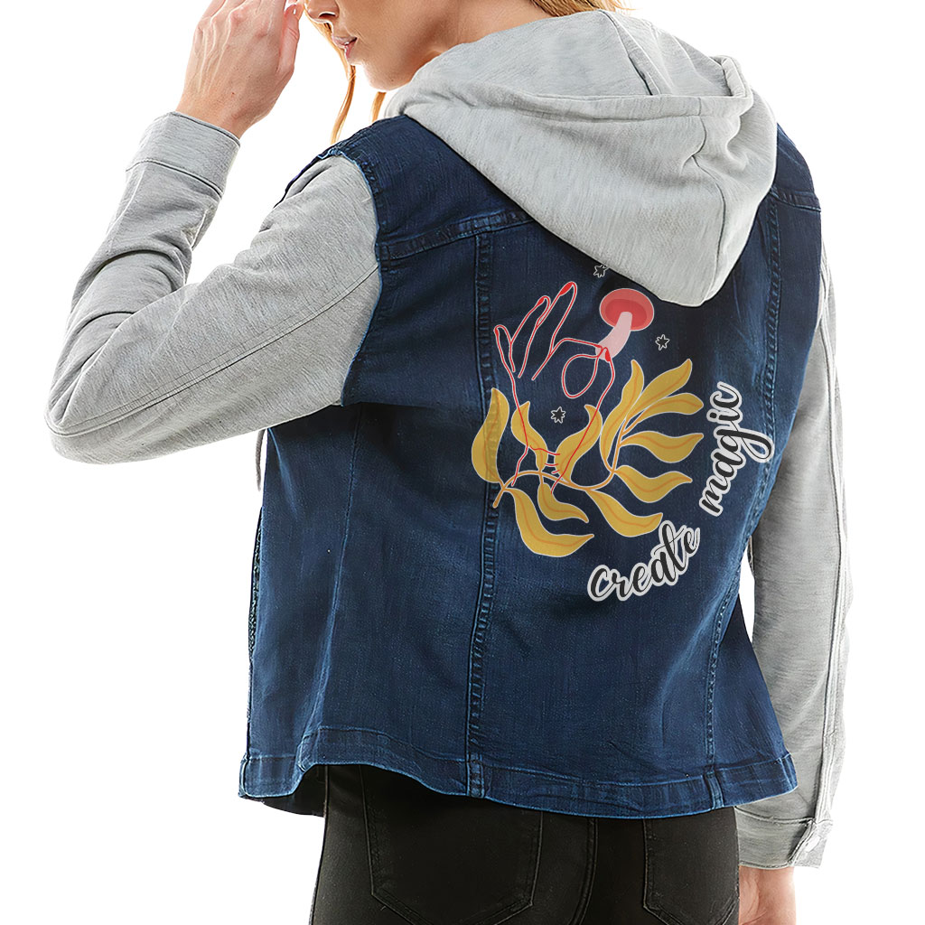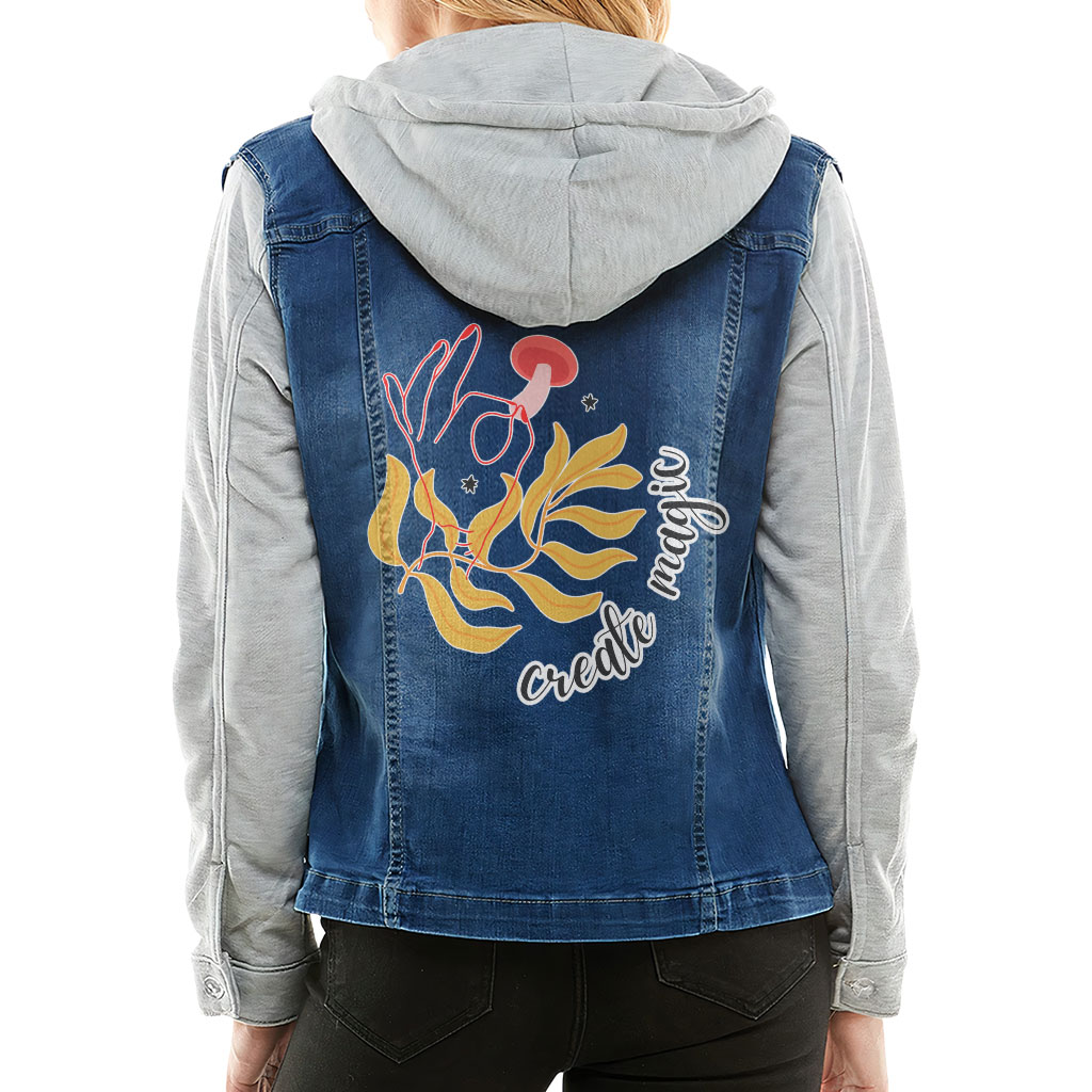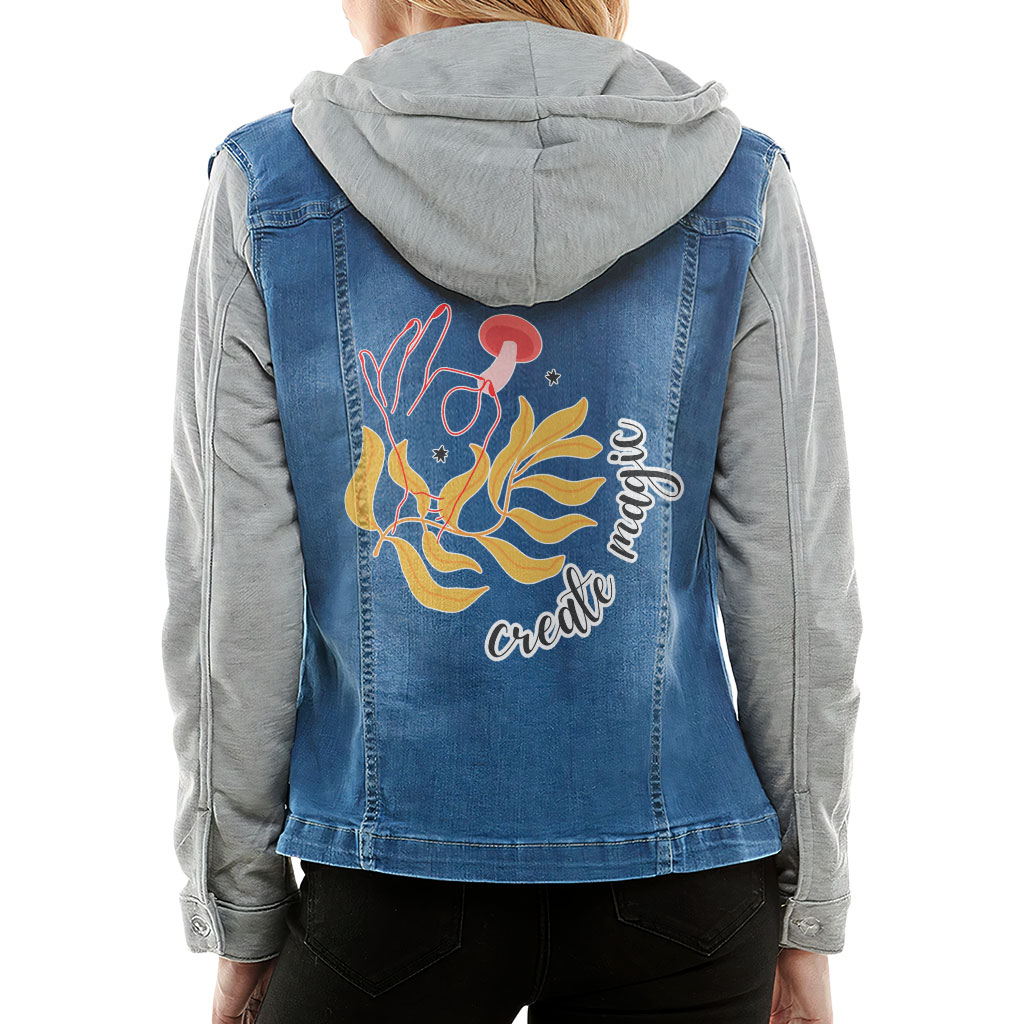 Spiritual Design Ladies Denim Jacket with Fleece Hoodie