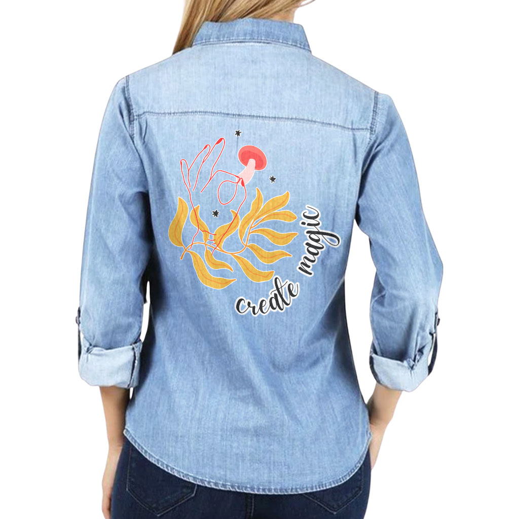 Are you looking for a stylish, comfortable staple piece for your wardrobe? Look no further than Mushroom Ladies Denim Shirt. Whether dressed up or down, this denim shirt is sure to be a favorite! Simply pair it with jeans and sneakers for a casual-chic look and add dramatic statement earrings for that effortless style upgrade. Get ready to fall in love with Cool Art Denim Shirt—you won’t regret it!