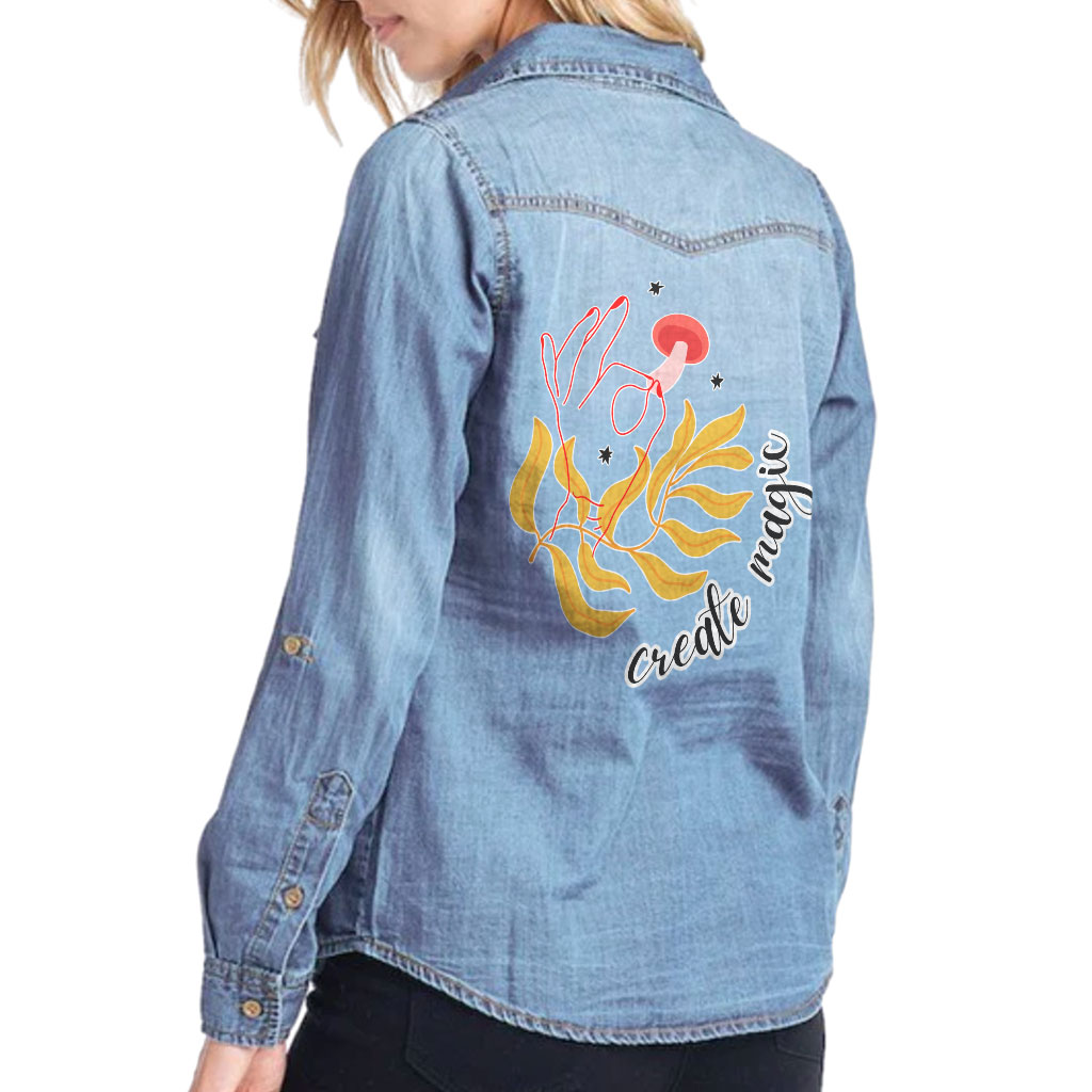 Spiritual Design Women’s Long Sleeve Denim Shirt