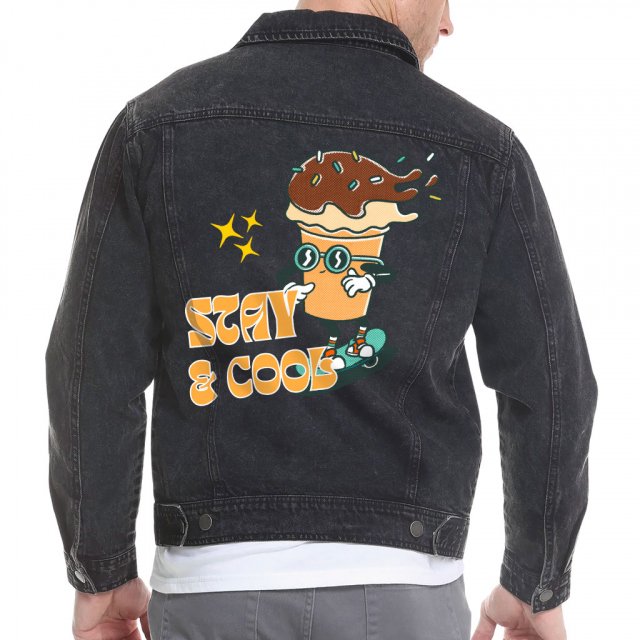 Stay Cool Men’s Denim Shirt with Distressed – Ice Cream Denim Shirt – Funny Design Shirt for Men